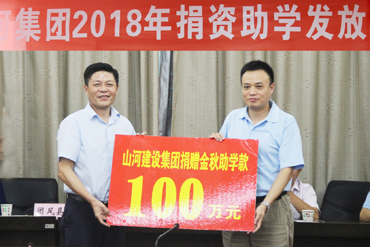 8月27日,山河集團(tuán)2018年“山河扶貧助困教育基金”捐贈(zèng)活動(dòng)在團(tuán)風(fēng)縣政府七樓會(huì)議室舉行。當(dāng)天,山河集團(tuán)出資100萬元,資助團(tuán)風(fēng)縣百余名貧困大學(xué)生走進(jìn)學(xué)堂??h人大常委會(huì)主任杜泉源,縣政協(xié)主席易大安,縣委常委、縣委辦主任丁永忠出席,副縣長黃菊花代表縣政府接過寫有“山河扶貧助困教育基金100萬元”的牌匾。