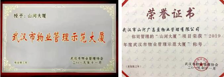 山河大廈榮獲“2019年度武漢市物業(yè)管理示范大廈”稱號(hào)
