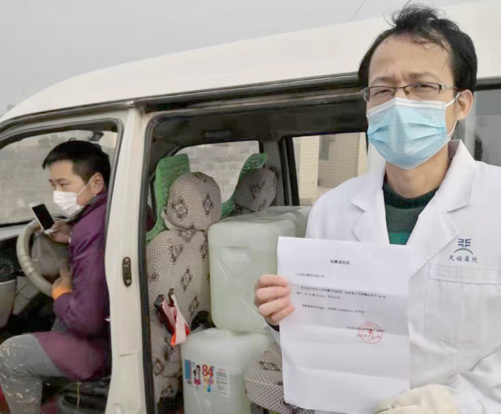 4.向武漢、襄陽、黃岡團風等醫(yī)療單位捐贈84消毒液共2.5噸
