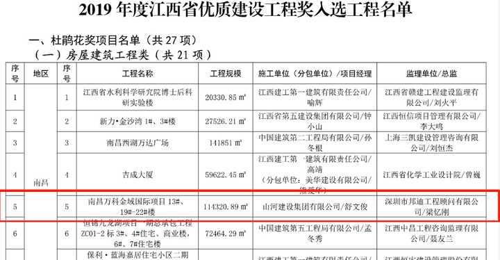 此外,該項(xiàng)目曾獲得“南昌市優(yōu)質(zhì)建設(shè)工程”“南昌市安全生產(chǎn)、文明施工標(biāo)準(zhǔn)化樣板工地”“江西省建筑安全生產(chǎn)標(biāo)準(zhǔn)化示范工地”等榮譽(yù)稱號(hào)。