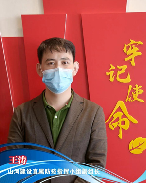很多山河人都記得這樣一張照片,火神山醫(yī)院的工地上,施工人員拉起橫幅為武漢加油。這張照片的拍攝者,正是山河建設(shè)直屬防疫指揮小組副組長(zhǎng)王濤,在火神山醫(yī)院建設(shè)的沖刺階段,他和大家一起,奮戰(zhàn)在這個(gè)充滿希望的地方。