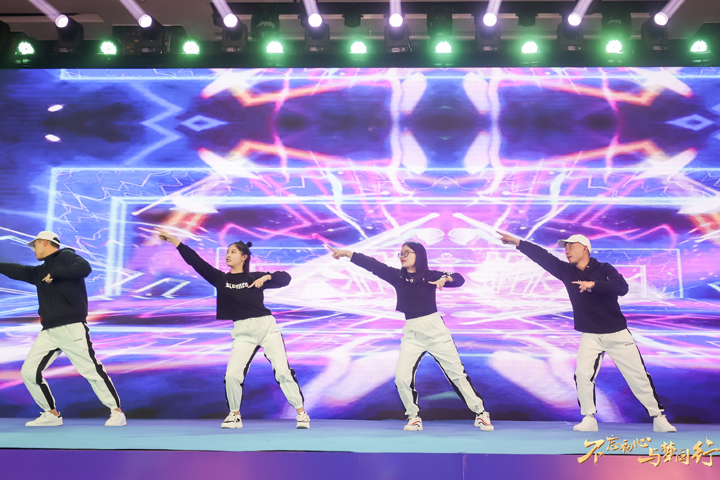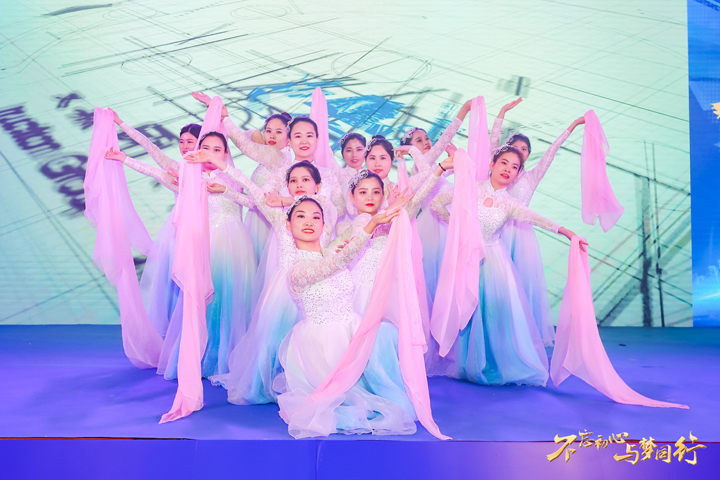 現(xiàn)場齊聲倒計時過后,伴隨著動人的音樂聲,寄托著深深祝福的開場舞《筑夢》拉開了年會的序幕。