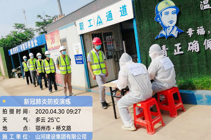 4月30日,山河建設(shè)集團(tuán)項目管理公司承建的鄂州碧桂園黃金時代項目施工現(xiàn)場,集團(tuán)攜手鄂鋼醫(yī)院開展的新冠肺炎防疫聯(lián)合演習(xí)在這里進(jìn)行。