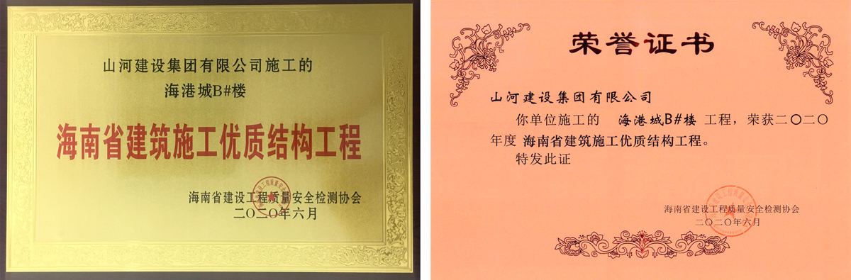 [海南公司]山河集團海南公司海港城項目B#樓榮獲“海南省建筑施工優(yōu)質(zhì)結(jié)構(gòu)工程”