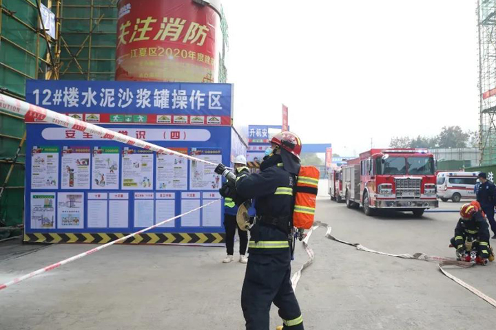 江夏區(qū)2020年度建筑工程消防應(yīng)急救援演練在山河集團(tuán)工地舉行