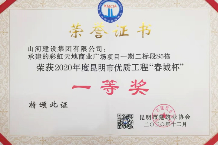 [云南公司]山河集團(tuán)云南(廣西)公司遠(yuǎn)洋彩虹天地商業(yè)廣場項(xiàng)目喜獲“春城杯”一等獎(jiǎng)