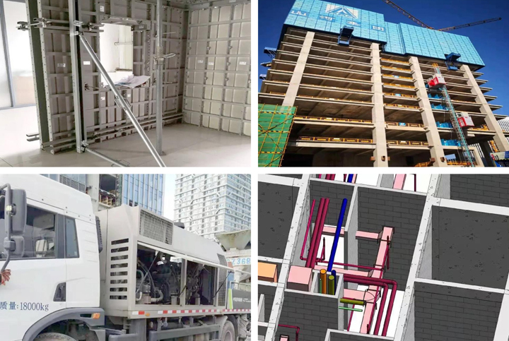 施工過程中,項(xiàng)目采用公司自主設(shè)計、生產(chǎn)的鋁合金模板,具有強(qiáng)度高、安全性好、優(yōu)質(zhì)環(huán)保的特點(diǎn),支撐采用早拆原理,只用一套模板、三套支撐,實(shí)現(xiàn)了4天一層樓的澆筑速度;采用集成附著式升降腳手架技術(shù),米字型造型簡潔大方,有效降低施工噪音污染、粉塵污染,起到保護(hù)環(huán)境的作用。