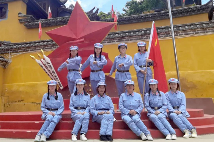 上午9時(shí),全體黨員、預(yù)備黨員、發(fā)展對(duì)象、入黨積極分子等近50人整裝出發(fā),乘車(chē)前往120公里外的丹桂紅軍村。這個(gè)看起來(lái)不起眼的小村莊,見(jiàn)證了中央紅軍巧渡金沙江的偉大壯舉,也見(jiàn)證了中國(guó)革命史上的一次重大轉(zhuǎn)折。抵達(dá)目的地后,大家身著戎裝,英姿颯爽地走進(jìn)丹桂紅軍村,開(kāi)始了這場(chǎng)紅色之旅。