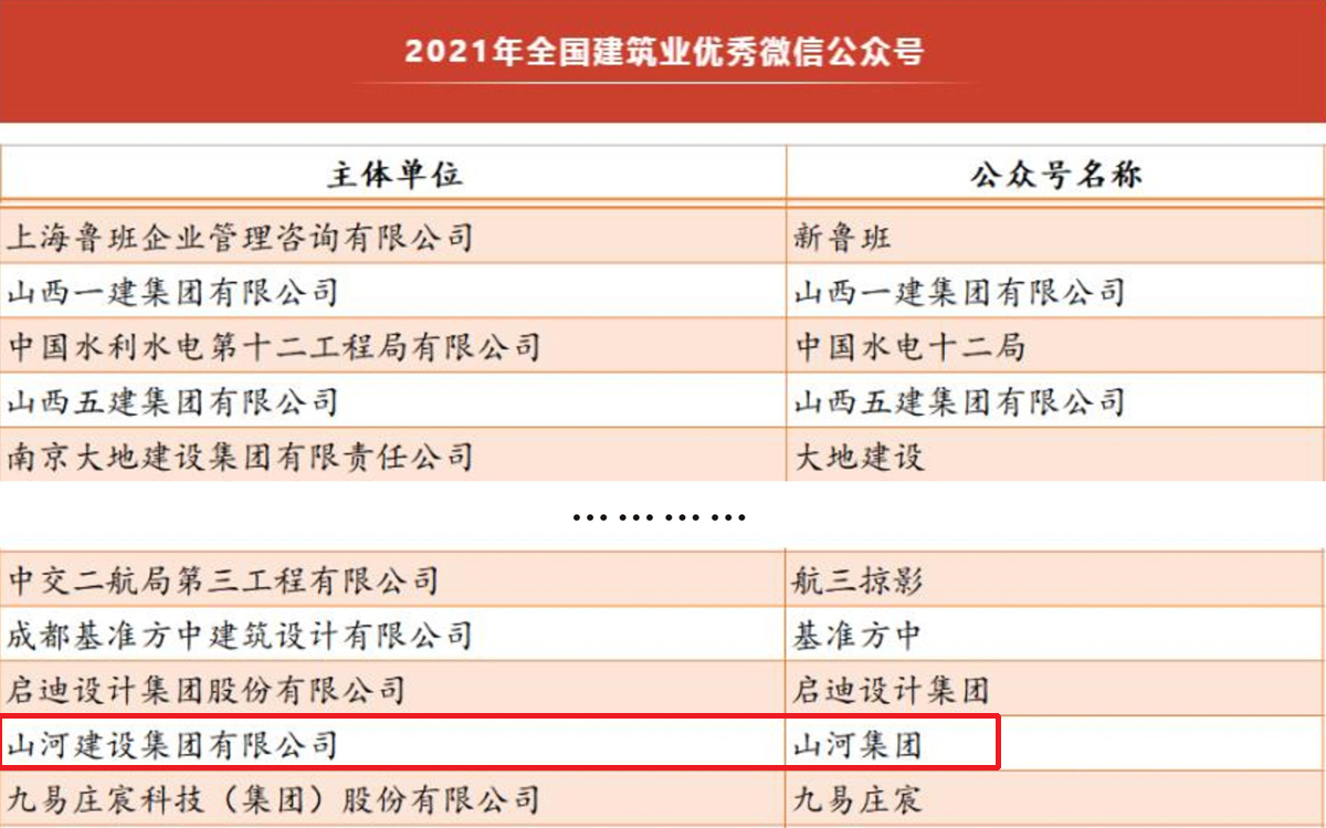 山河集團公眾號再次獲評“全國建筑業(yè)優(yōu)秀微信公眾號”