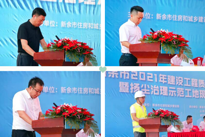 活動伊始,新余市建管局局長何祝生、新余市永越置業(yè)有限公司總經(jīng)理郜文、山河建設(shè)集團(tuán)江西公司總經(jīng)理熊善杰分別發(fā)言,聯(lián)發(fā)永康狀元府項(xiàng)目經(jīng)理袁傳根就項(xiàng)目質(zhì)量安全、揚(yáng)塵治理等方面進(jìn)行了經(jīng)驗(yàn)分享。