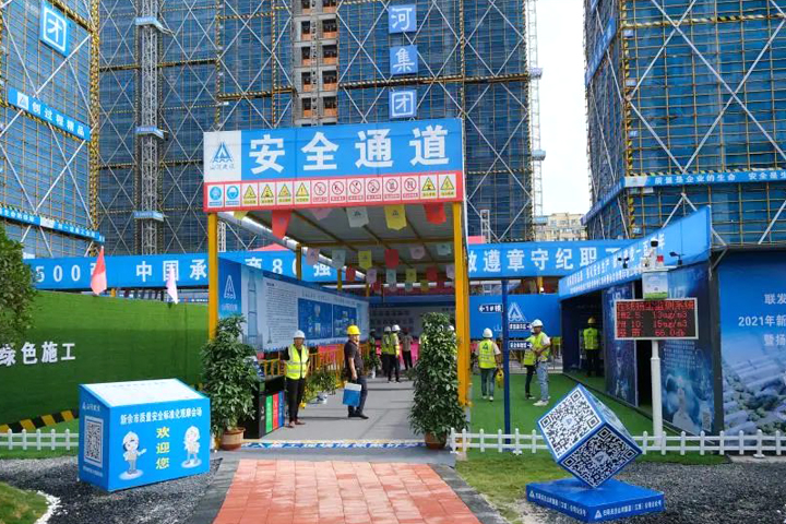 隨后,與會代表前往安全體驗(yàn)區(qū)、工法樣板區(qū)、主體樓棟、實(shí)測實(shí)量展示區(qū)、安全管理展示區(qū)、施工機(jī)具展示區(qū)進(jìn)行參觀,對施工現(xiàn)場的安全文明標(biāo)準(zhǔn)化建設(shè)、基坑防護(hù)欄、噴淋降塵系統(tǒng)等措施給予了充分肯定。