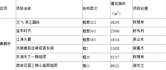 近日,武漢建筑業(yè)協(xié)會公布了武漢市房屋建筑工程黃鶴獎2006年度獲獎項目名單,經(jīng)武漢市黃鶴獎評審委員會評審、審定,山河建設(shè)集團有限公司施工總承包的漢飛?濱江國際、寶豐時代、江濤大廈、無細胞百白破疫苗車間、東湖天下一期、奧林花園三期等6項工程榮獲“黃鶴杯”獎。獲獎工程詳細情況如下: