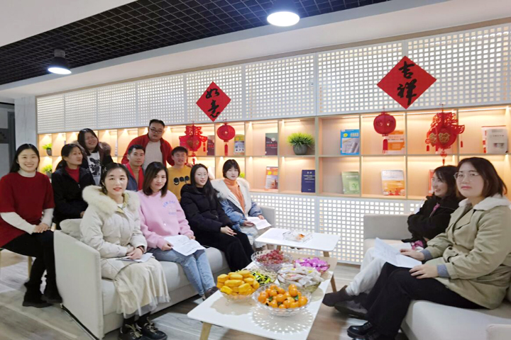 讀書分享是云南公司長期開展的一項文化活動,受到員工的歡迎和積極參與。為了凸顯新年的喜慶氛圍,公司閱讀區(qū)貼上“吉祥”“如意”、掛上中國結(jié),部分員工特意穿上紅外套、戴上紅圍巾,表達著對新年的美好期盼。