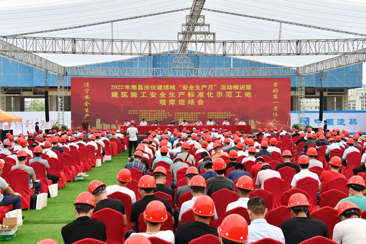 6月17日,由南昌市住房和城鄉(xiāng)建設(shè)局主辦,中建二局、中建三局、山河集團(tuán)等單位承辦的2022年南昌市住建領(lǐng)域“安全生產(chǎn)月”活動(dòng)推進(jìn)暨建筑施工安全生產(chǎn)標(biāo)準(zhǔn)化示范工地觀摩現(xiàn)場(chǎng)會(huì)順利舉行。