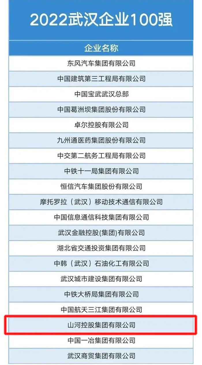 山河集團(tuán)上榜2022武漢企業(yè)百?gòu)?qiáng)